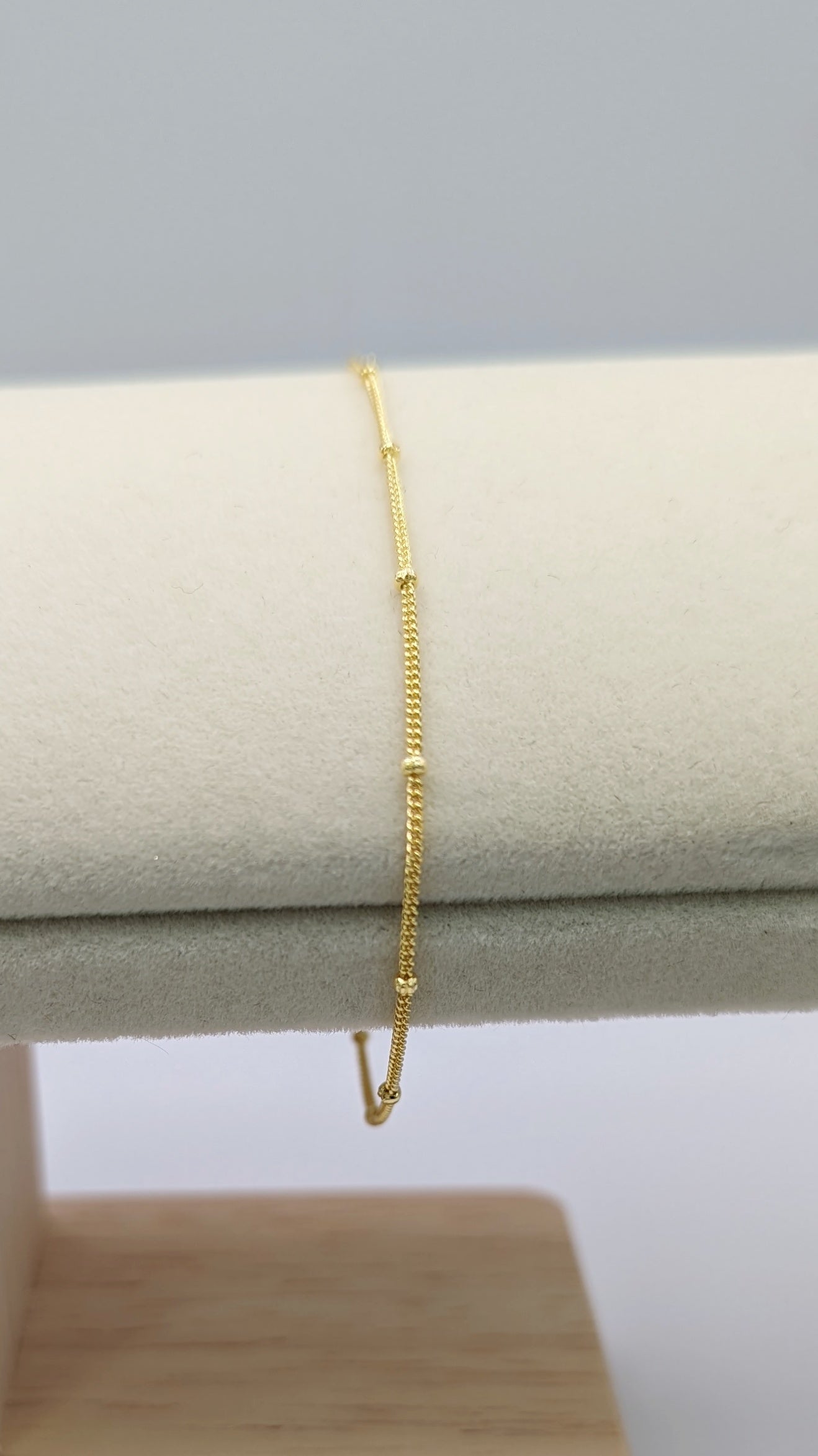 This delicate and elegant chic beaded gold bracelet in 18 ct Gold Vermeil is a true beauty. Its lightweight and simplistic design will look luxurious on your skin and is a real showstopper.