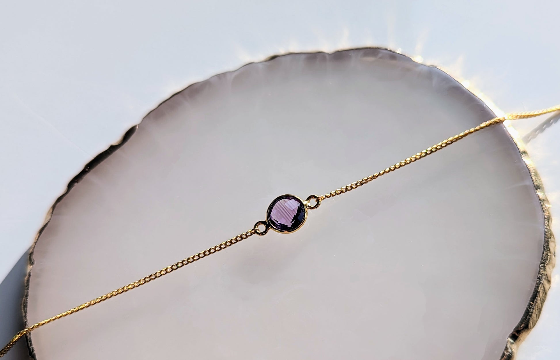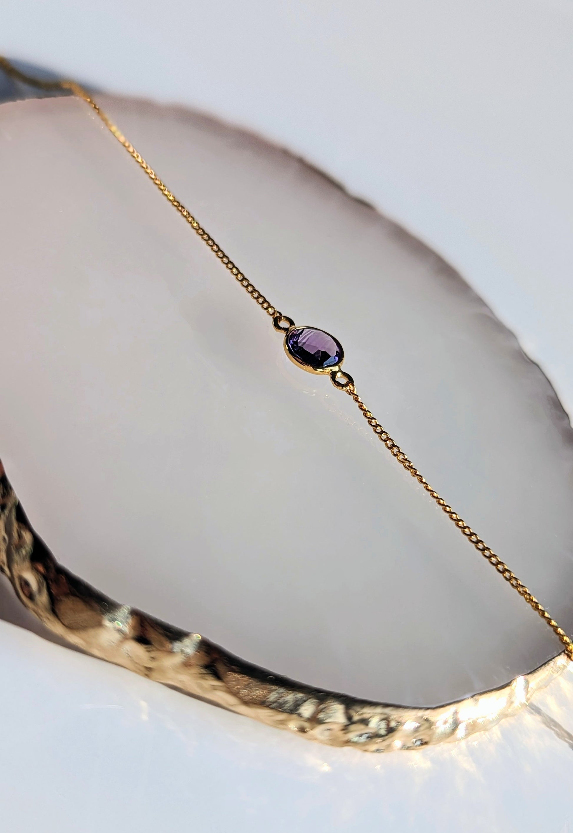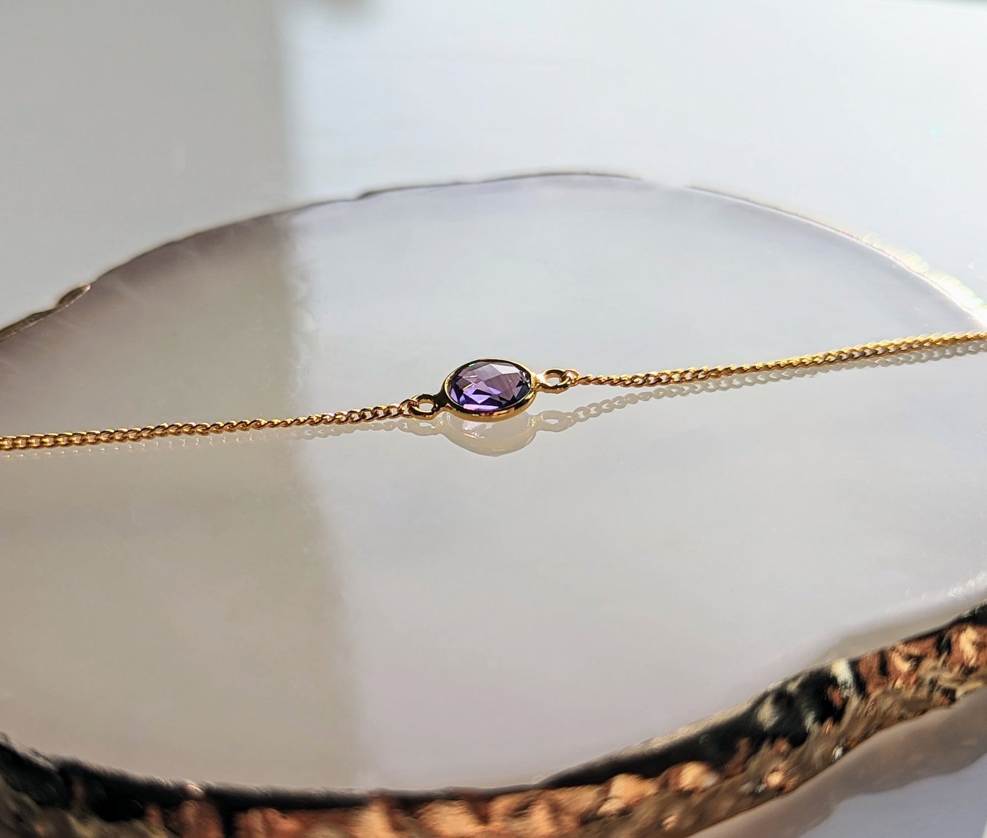 This beautiful Amethyst Chain Bracelet in 18 ct Gold Vermeil is a luxurious piece to wear on any occasion and the epitome of elegance and beauty. Its multifaceted stone surface captures and reflects the light and radiates the majestic purple tones, maximising the gemstone's luxury and perfection.