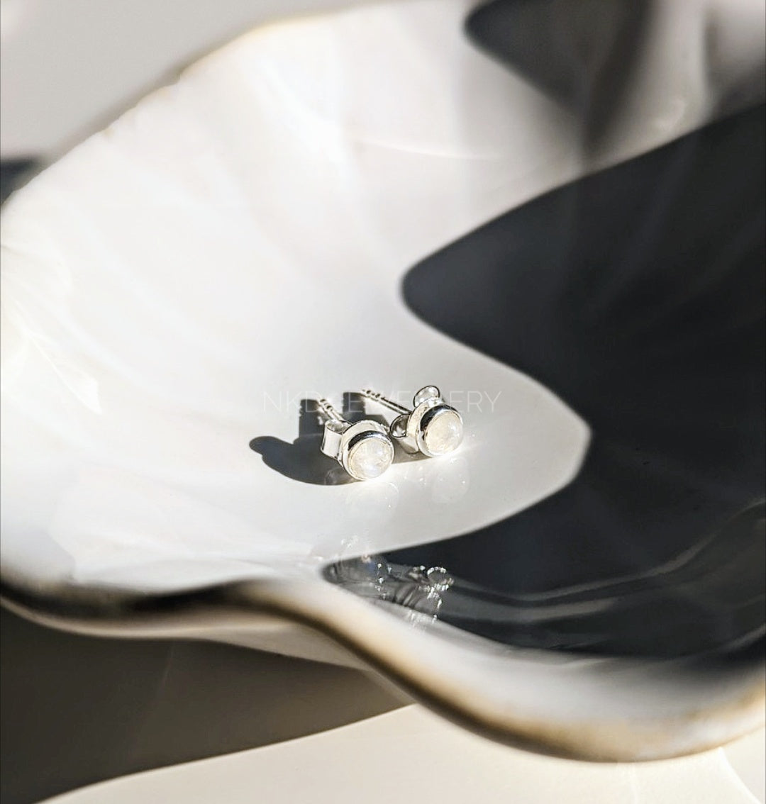 Kyoto - Sterling Silver Mini Rainbow Moonstone Round Stud Earrings